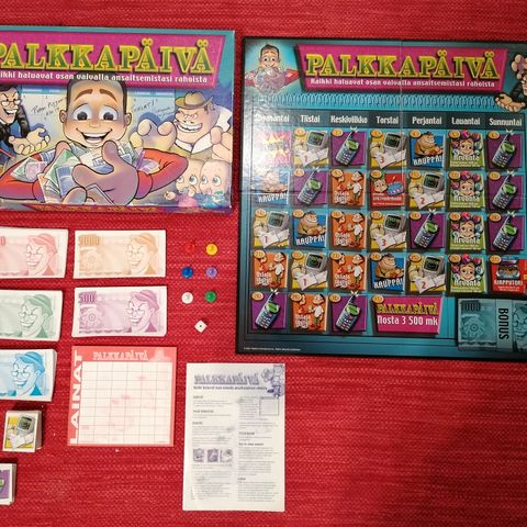 Myydään hyväkuntoinen klassikkopeli Palkkapäivä. Kaikki osat tallella, myös ohjeet. Pelivälineet ehjät ja siistit. Pelilaatikko ehjä. Parker Game 2001.