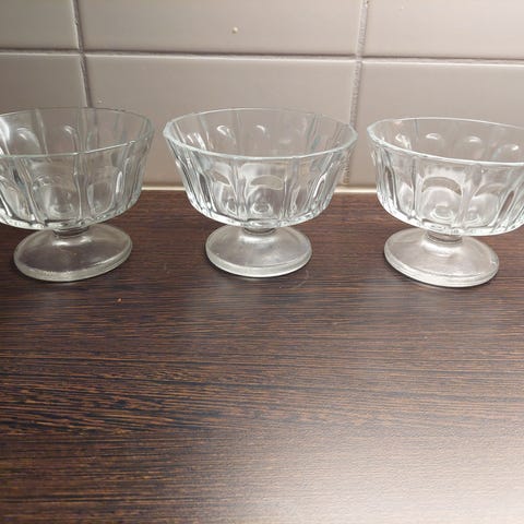 Vintage Anchor Hocking Puristettu lasi, 2kpl jälkiruoka-astioita. Korkeus 4,5cm, suun halkaisija 11cm. Hyvä kuntoiset. Nouto, postitus tai toridiili. Halutessasi samaan toridiili- / postipakettiin voi kerätä useamman tuotteen ja maksaa ne kerralla, niin tulevat kaikki samassa paketissa. Laita viestiä torin kautta, jos haluat ostaa samaan pakettiin muuta.