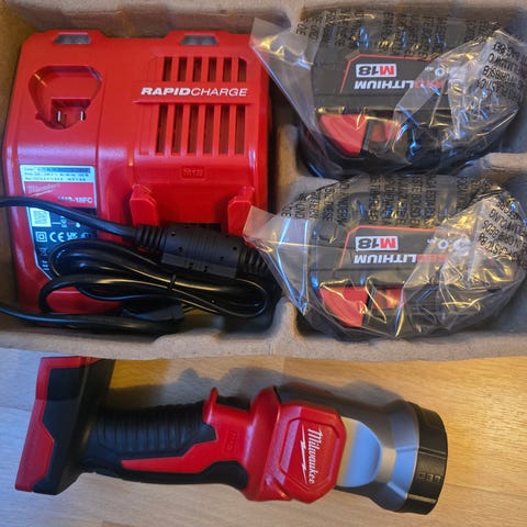 Puukkosaha,akkuja 5.0 kpl ja laturi, työvalo, kassi. Uusia käyttämätön setti.
