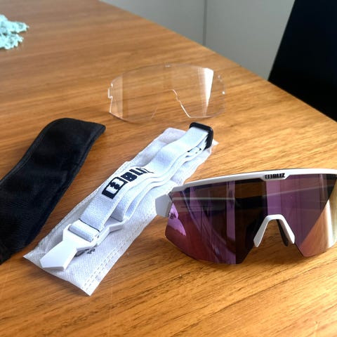 Bliz matrix SMALL urheilulasit väri musta/sininen. Kaksi pienenpientä jälkeä linssin oikealla puolella joista zoomattu kuva, ei näy/häiritse käytössä. Huomioitu hinnassa. Vain nouto.