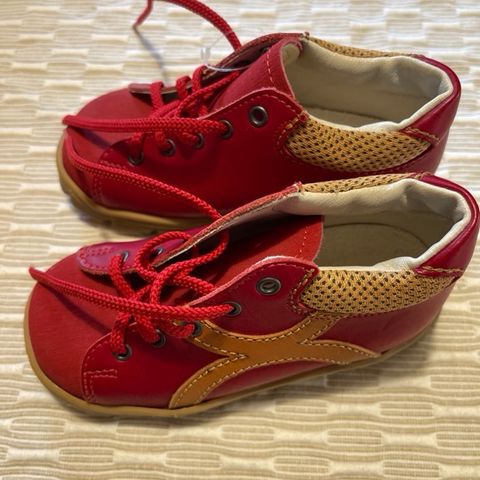 Reima lasten kengät, koko 23, unisex. Varren yläosa vihreää materiaalia ja alaosa musta. Kengissä on tarrakiinnitys helpottamassa pukemista. Pohjassa on vaalea välipohja punaisella raidalla. Soveltuvat käytettäväksi lapsille arjessa ja ulkoleikeissä.