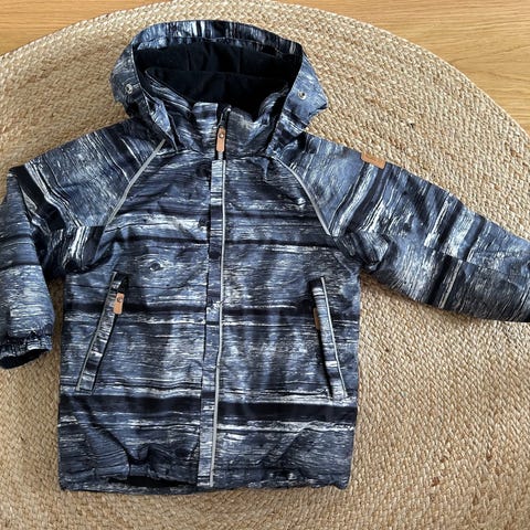 Myydään siistikuntoinen Reiman koon 104 toppatakki. Värissä saumoissa hieman pinttymää (ei nyt pestynä) ja yhden pistojäljen löysin helmasta (kuvissa). Huppu irrotettava.