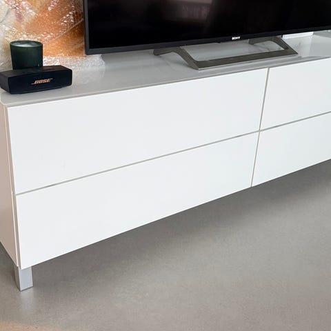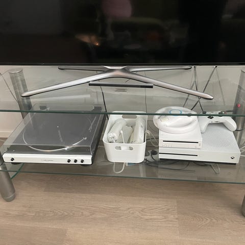 Lasinen välihylly poksahti rikki. Muuten ehjä , jotain pieniä naarmuja ehkä. Väri mustanruskea
