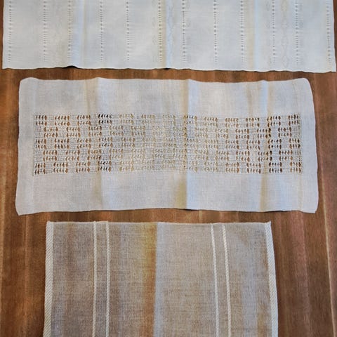 Siniruutuiset pöytäliinat 3 kpl. Koko 42 x 150. Kaikki yhteensä 3 e. Vain haku.
