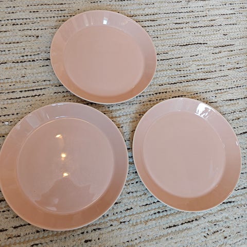 Iittala Teema isot ruokalautaset, kyseistä väriä ei taida valmistaa enään. Sopivat erinomaisesti arkikäyttöön sen lasipintaisen keramiikan vuoksi. (tai vastaava kova materiaali). Myydään kuvissa näkyvänä settinä.