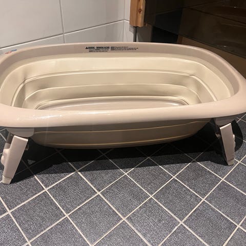 Valkoinen vauvan kylpytuki kylpyammeeseen. Kylpytuessa on Nalle Puh -kuvio selkäosassa ja muotoiltu istuinosa, joka tukee vauvaa kylvyn aikana. Ostettu uutena,