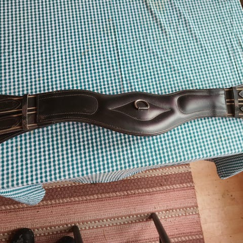 Myydään Horzen musta nahkainen koulusatulavyö. Aitoa nahkaa. Anatomisesti muotoiltu. Joustot kummassakin päässä. Ollut käytössä noin 2 vuotta. Kunto hyvä, huollettu säännöllisesti nahkarasvalla. Suutarilla vahvistettu vastinhihnojen päille tarkoitettujen nahkalenkkien ompeleet. Pituus virallisesti 75 cm, tarkka mitta soljen päästä toiseen 74 cm. Vastaavaa vyötä en enää Horzen valikoimasta löytänyt. Hinta uutena oli noin 65-70 e. ToriDiilin kautta lähetys tai nouto Järvenpäästä.