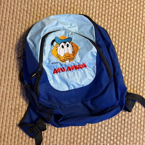 Myydään vähänkäytetty, ehjä, siisti Aku Ankka reppu, leveys noin 37 cm, korkeus noin 50 cm, paino noin 400g, reppu Lievestuoreella