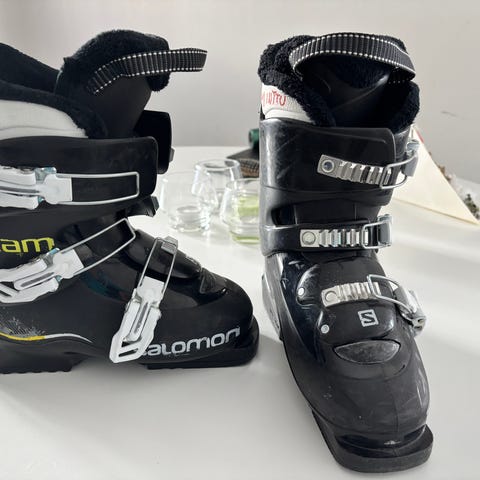 Salolom-laskettelumonot kokoa 22/266 (sopii 22cm pitkälle jalalle), vastaa noin kokoa 35. Väri punertava/oranssi. Joitain käytön jälkiä (lähinnä naarmuja), mutta yleisilmeeltään siistit ja ehjät.