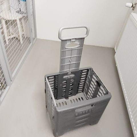 Myydään ostoskärry, jossa viininpunainen kangaspussi ja musta metallirunko. Kärryssä on vetokahva ja kaksi pyörää helpottamaan tavaroiden kuljettamista. Soveltuu esimerkiksi ruokaostosten tai muiden kantamusten kuljettamiseen kävellen liikuttaessa. Nouto Halikko kk