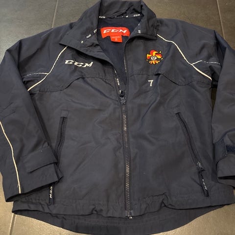 CCM:n Jokerit-logolla varustettu hyväkuntoinen tuulitakki, koossa S. Musta takki, jossa edessä vetoketjulliset taskut. Matala pystykaulus. Sopii jääkiekkoharrastukseen tai ulkoiluun.
