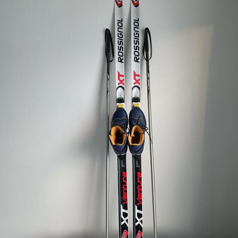 Hyväkuntoinen käytetty suksipaketti lapselle esimerkiksi koulun hiihtoon. Vain pientä käytön jälkeä.