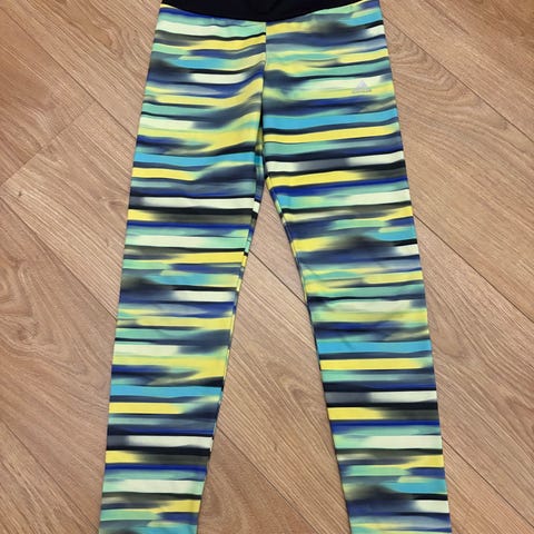 Kahdet legginsit, 150 cm. Adidas ja Monia. Yhteensä 4 euroa.