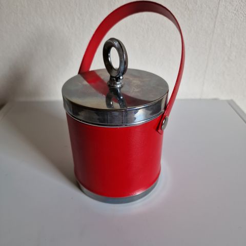 Iso ja painava vanha vintage jääpala-astia. Ulkopinta metallia, sisäpuolella styrox eriste ja lasinen sisäosa jääpaloille. Rakenne on samanlainen kuin vanhoissa termoskannuissa. Korkeus (ilman kahvaa ja sankaa) noin 15cm. Pohjassa himmeällä valmistajan merkintä josta en saa selvää, mutta siinä erottuu sana Sweden, eli on ruotsalainen. Todella painava ja siistikuntoinen.