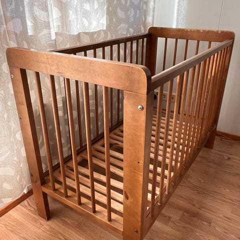 TROLL pinnasänky, väri valkoinen. Perinteinen lastensänky, jossa on laidat molemmilla sivuilla. Sopii vauvalle ja taaperolle nukkumiseen. Materiaali puuta. Sänky on purettuna osiin, mukana laidat ja rungon osat kokoamista varten.