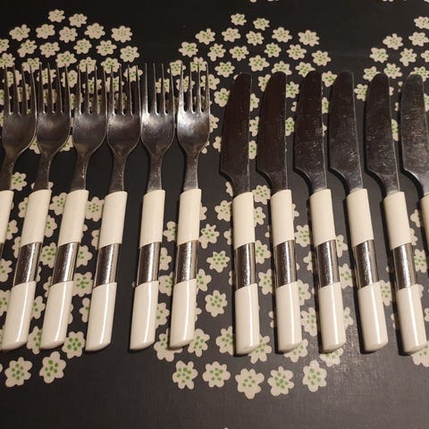 Myydään kuvassa olevat valkoiset Hackman Festivo tarjoiluottimet .