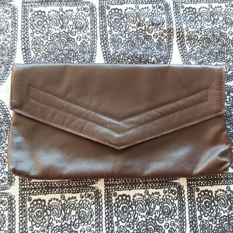 Hienostunut vintage-käsilaukku, ns. kirjekuori-iltalaukku, kaukaa menneisyydestä; muistitiedon mukaan 1930-luvulta, mutta voi toki olla hiukan uudempikin. Sisällä vielä alkuperäiset suojapaperit tallella, laukkua ei todellakaan ole käytetty. Keinonahkaa, viisi erillistä lokeroa, kantohihnan pituutta voi säätää. Laukun pituus 340 mm, korkeus 150 mm, paksuus 45 mm. Kunto täysi kymppi! Kotiinkuljetus järjestyy samaan hintaan Tampereella, lähetyskulut lisätään. Kysy!