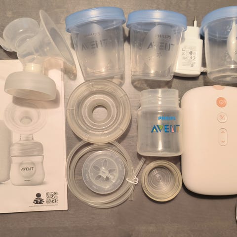 Avent rintapumppu, hyvä kuntoinen ja siisti seuraavallekin. Silikoni osat tyypillisesti hiukan kellertyneet mutta ei vaikuta käyttöön. Saa myös ostettua uusia erikseen