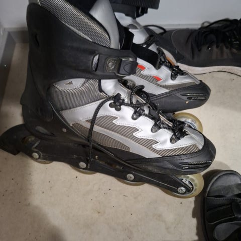 CCM Vector PF4 rullaluistimet rullakiekkoon. Koko 43 (9). Väri harmaa ja sininen, vihreät renkaat. Nauhakiinnitys. Neljän renkaan alumiinirunko, suunniteltu rullakiekon pelaamiseen kovilla alustoilla. Soveltuu rullaluisteluun ja rullakiekkoon käyttäjälle, jonka kengännumero on noin 43.