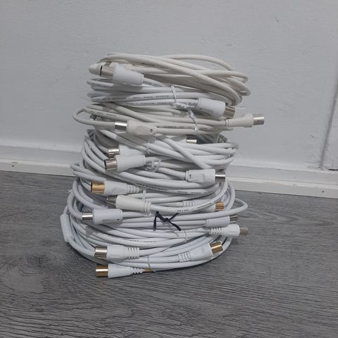 Myyn pakettina kotoolta löytyneet ylimääräiset johdot: hama antennikaapeli, tv datajako, verkkopiuha, hdmi x 2