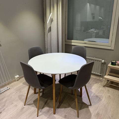 Pöytä ja kolme tuolia