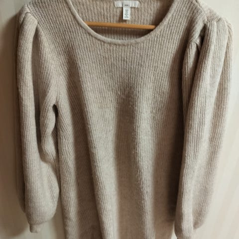 H&M Mama neulemekko raskaana oleville. Koko S. Materiaali polyesteriä/ akryylia. Väriltään beige/ruskea. Mallin päällä kuvan valotus vaalentaa sävyä.