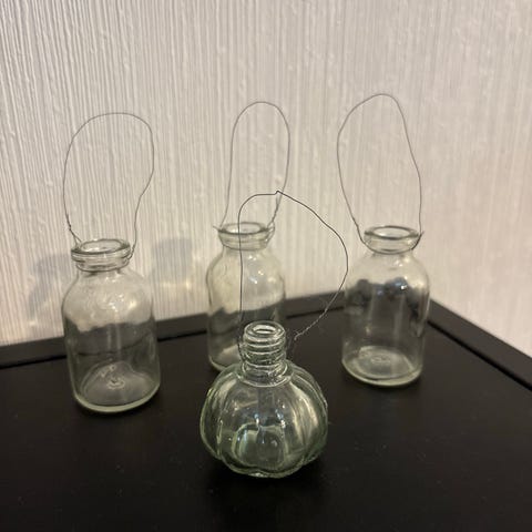 Lasiset pikkupullot esim. yhdelle kukalle tai muuhun sisustukseen. Korkeudet 6,7 ja 10cm.Nouto Naantali-Turku tai postitus.