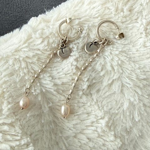 Materiaali hopea ja heleän vaaleanpunainen helmi.