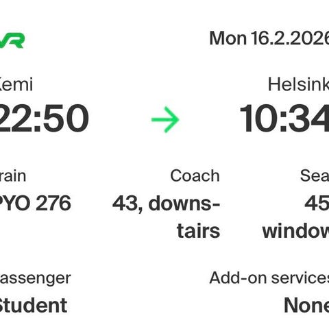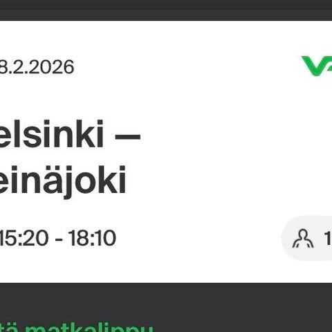 Myydään menopaluuliput Lapualta Helsinkiin ma23.2-to26.2,yksi aikuinen ja kaksi lasta yht.100€
