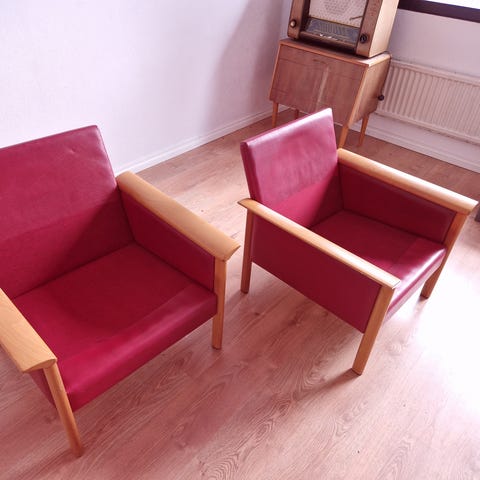 Kaksi 70 luvun Carl Malmstenin nojatuolia "Vår fru" OH Sjögren, Tranås.