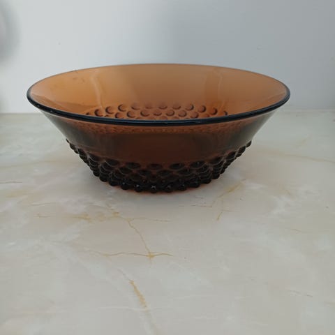 Tämä on Pertti Santalahden suunnittelema ja Humppilan lasitehtaan valmistama taidelasikulho 1970–1980-luvuilta.