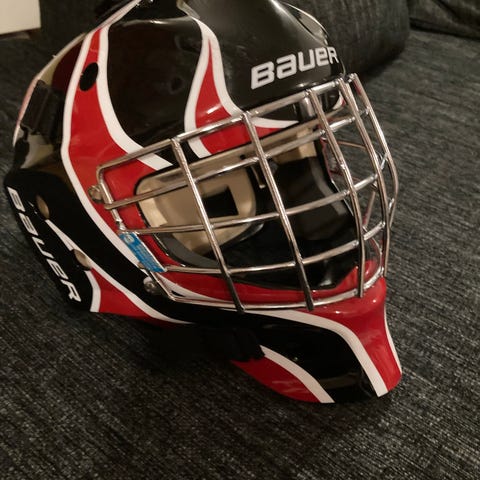Keväällä -25 uutena ostettu maalivahdin kypärä myydään isomman tieltä. Käytössä ollut siis vajaan kauden verran! Kypärä siistitään ennen luovutusta tarroista, muutoin todella hyvässä kunnossa. Kaulapleksi ei kuulu kauppaan. Kerron ihmeessä lisää ja jos hinta mietityttää niin kysy😉!