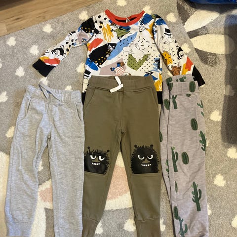 Vaatepaketti, ollut yhdellä lapsella käytössä, eivät ole uutta vastaavia eli osaa on paljon käytetty. Haalistumaa on mutta ehyitä.