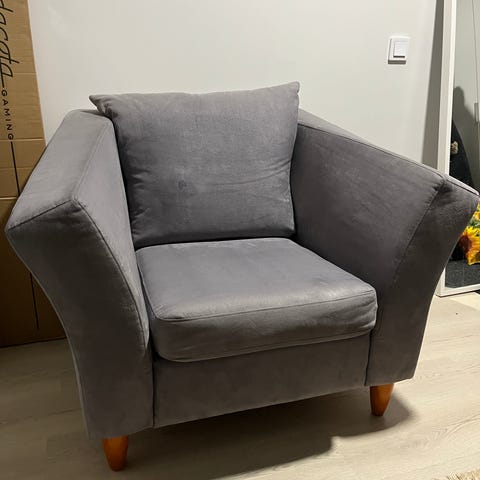 Kodin Anttilasta ostettu nojatuoli. Todellinen löhöäjän unelma. Mitat ovat leveys 131, syvyys 95, korkeus 72. Kantamaan tarvitaan kaksi ihmistä, on aika painava.
