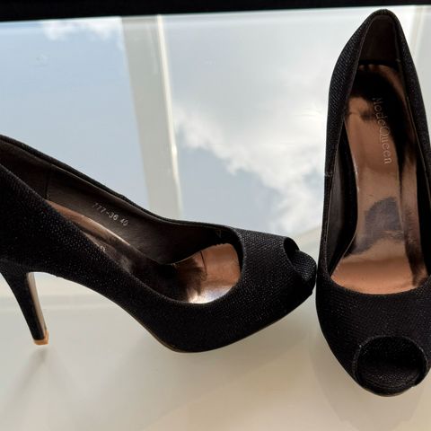Myydään H&M - mustat korkonilkkurit. Pinta synteettinen materiaali, polyuretaani. Käytetty, mutta käyttöikää kovasti vielä jäljellä.
