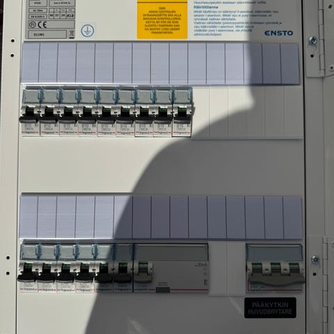 Ylimääräiseksi jäänyt muovinen ryhmäkeskus. Käyttämätön.