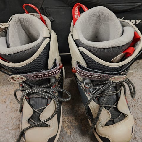 Hyväkuntoiset ja lämpöiset, ei kulumia boa-kiristyksellä olevat lautailu kengät , laudan siteistä tarttunut hieman mustaa väriä