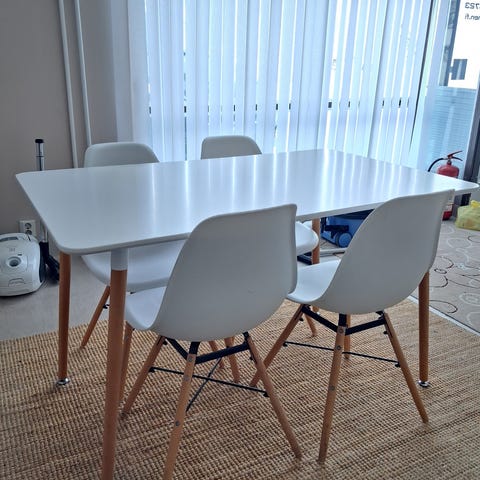 Kaunis, klassinen setti, jonka ympärille mahtuu yllättäin isompikin poppoo. Pöydän kannessa ajan patinaa, lakattu, jatkopala puuttuu. Tuolit verhoiltu ja puuosat maalattu pari vuotta sitten Helmi kalustemaalilla. Setti täysmäntyä. Mitat kuvissa. Nouto. Maksu mobilepay/ käteinen.