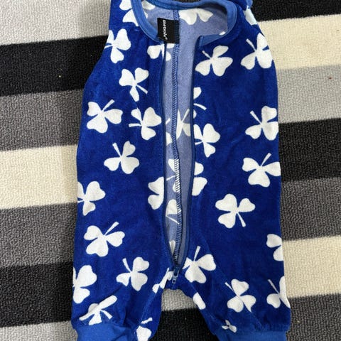 Metsola vauvan velour haalari, koko 62. Väri ruskea valkoisilla pilkuilla. Materiaali puuvillaa, ja sa pestä 60 asteella. Haalarissa on pitkät hihat umpinaiset jalkaterät ja huppu. Edessä vetoketju helpottamassa pukemista ja riisumista.