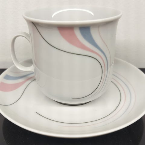 - 4:ssä kakkulautasessa sinisen kukan kohdalla väri halkeillut/haalistunut pois (katso erillinen kuva).