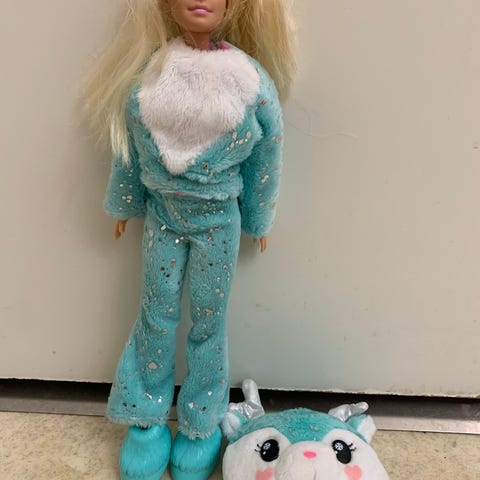 Barbie nukke, jolla on pitkät siniset kiharat hiukset ja värikäs paita sekä vaaleat shortsit. Nukella on keltaiset kengät ja korvakorut. Mukana tulee turkoosi kypärä, vihreät aurinkolasit ja violetti kamera-asuinen lisävaruste. Sopii leikkeihin ja kokoelmiin Barbie-teemaisena leluna.