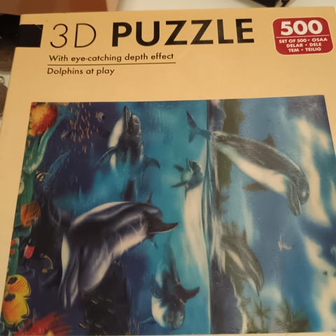 Party Puzzle palapeli, jossa meriaiheinen kuva delfiineistä, kaloista ja koralleista. Sopii ajanvietteeksi ja koko perheen yhteiseen tekemiseen. Palapeli on tarkoitettu koottavaksi tasaiselle alustalle ja se voidaan liimata ja kehystää valmiiksi tauluksi haluttaessa.