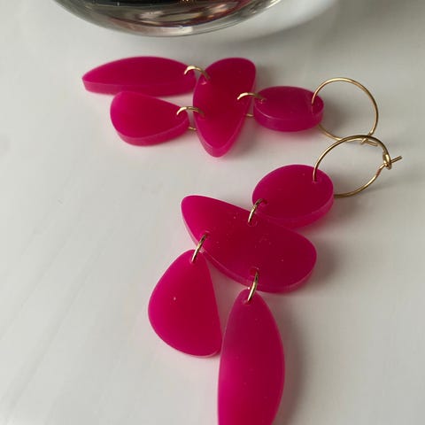 Korvakorut ovat uudet ja käyttämättömät. Korvakorurengas kullattu teräs, riipus lasi, preciosa kristalli, paljetti, akryyli, värit valkoinen/kulta/kirkas.
