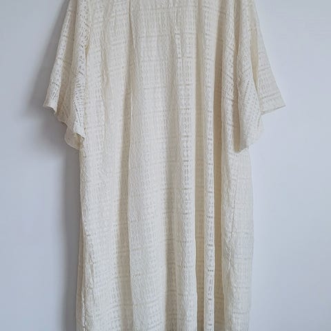 Kunto hyvä. O-h 100 cm, k-k 2 x 58 cm - 79 cm, hiha 35 cm, alahelma 2 x 95 cm venyttämättä
