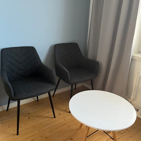 Myydään kaksi mustaa tuolia. Hyvässä kunnossa, mutta pienet jäljet kohdassa, josta osunut pöytää vasten. Ks. kuva. 20€/kpl, yhteensä 40€.