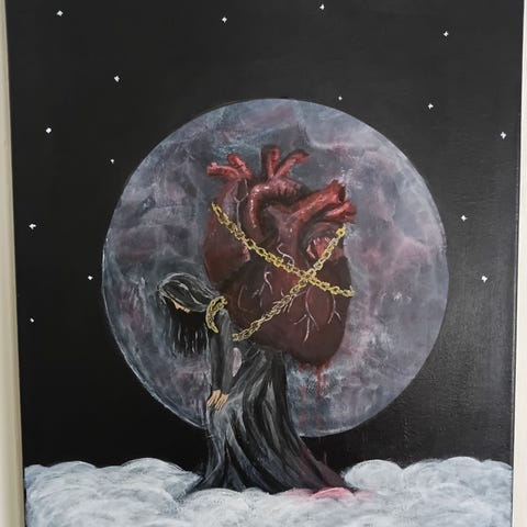 Suuri surrealistinen öljyvärimaalaus 145 x 100 cm