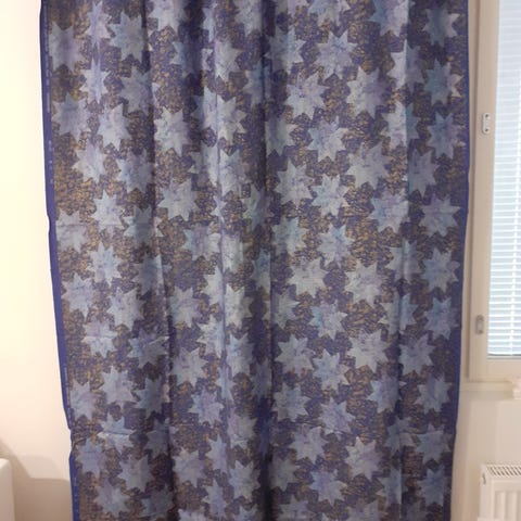 Kaunis Marimekon kuosi! Käytetty muutamia kertoja pöytäliinana. Leveät reunakäänteet, mutta ne voi helposti avata. Pieni tahra keskellä, huomioitu hinnnassa (en ole testannut erityisempää tahranpoistoa, joten saattaa hyvällä tuurilla lähteä).