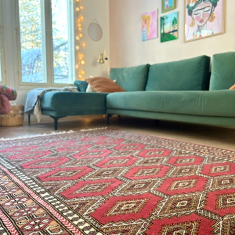 Vanha mutta hyvässä kunnossa oleva käsinsolmittu afghan villamatto