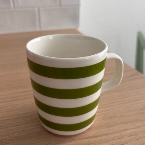 Marimekko Tasaraita muki. Voi noutaa myös Töölöstä.