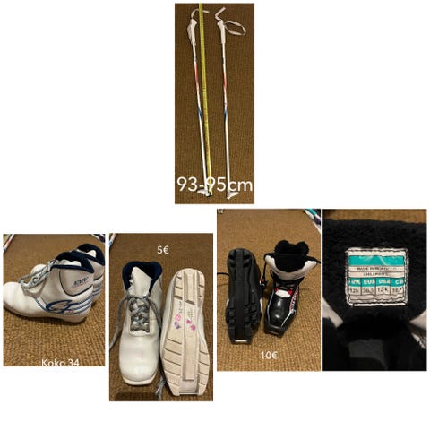 Monot ovat Fisher-merkkiset nilkkapituiset, nauhoituksella ja tukevalla kannalla, väriltään musta keltaisilla yksityiskohdilla. Setti on tarkoitettu lasten maastohiihtoon.